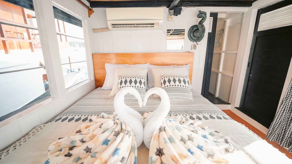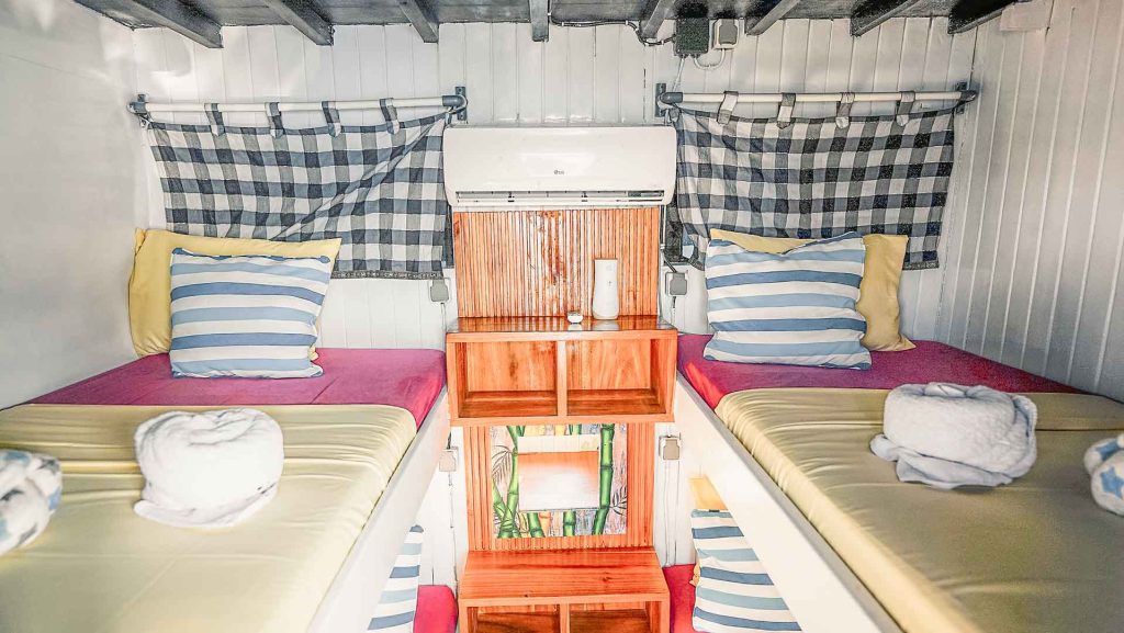 2 private cabin with private bathroom , each cabin is equipped with an extra bed | 4 bunk bed & 2 share toilet |